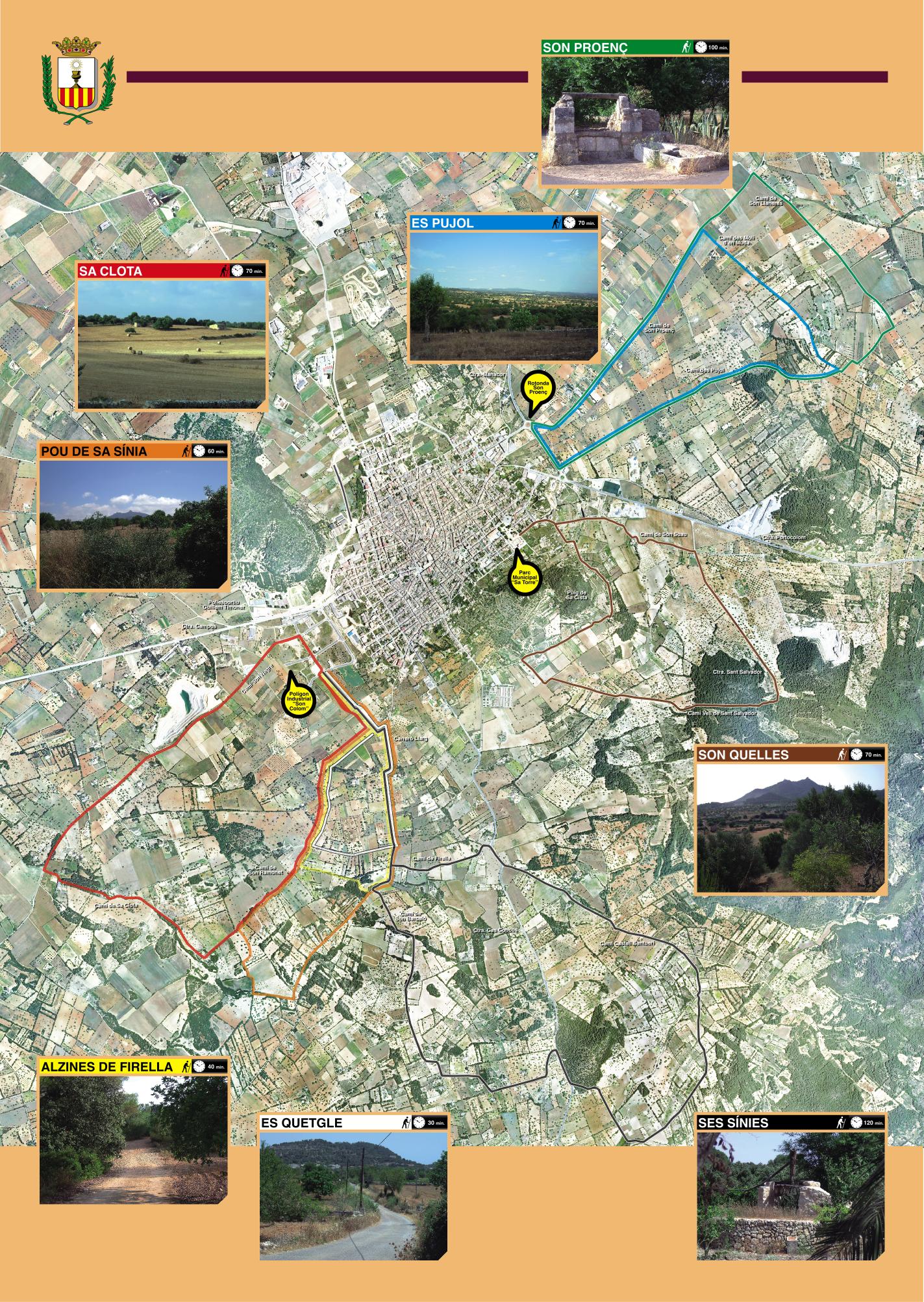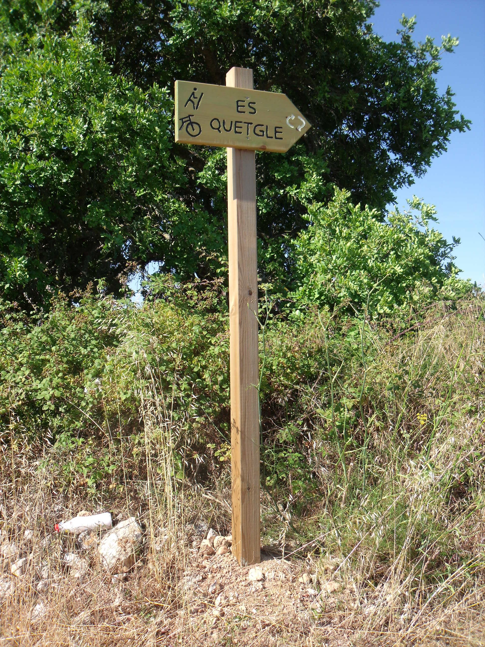 Itinerari cíclic que comença i acaba al polígon de Son Colom de Felanitx on hi ha el tauler amb la informació de la ruta (imatge 2).CaracterístiquesDistància: 3.265 metres.Durada aproximada: 30 minuts. Arxius adjunts Track de la ruta Fitxa Es Quetgle Imprimir