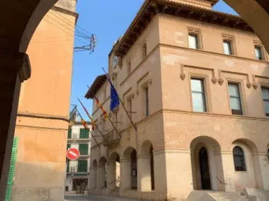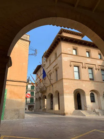 L’entrada a la Sala la conforma un portal d’amples dovelles, que era l’antic portal del casal de Can Bordoy, enderrocat l’any 1933. Del segon pis a la façana destaquen les grans finestres emmarcades per fines motllures i protegides per trencaaigües sobre culs-de-llàntia amb decoració vegetal. A la part central sobresurt el balcó, el qual remarca la zona d’ingrés a l’edifici.