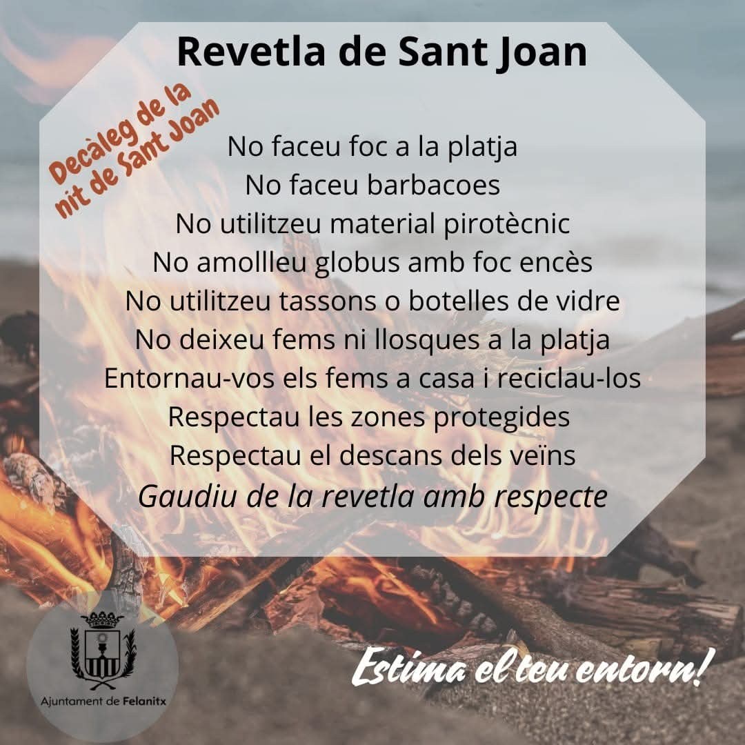 Volem recordar-vos les 10 propostes per complir i tenir una revetla tranquil·la. Compliu-los i tindrem un Felanitx millor.