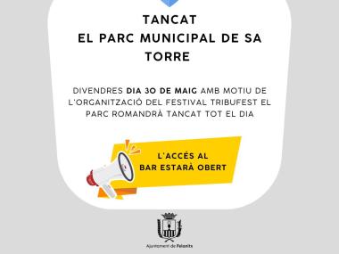 El pròxim divendres dia 30 de maig el Parc Municipal de sa Torre romandrà tancat