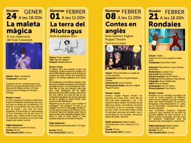 La programació siniciarà el dissabte 24 de gener, a les 18.00 h, amb La maleta màgica, el nou espectacle del Gran Cassanyes, una proposta de mentalisme adreçada a públic familiar, amb una durada de 60 minuts.