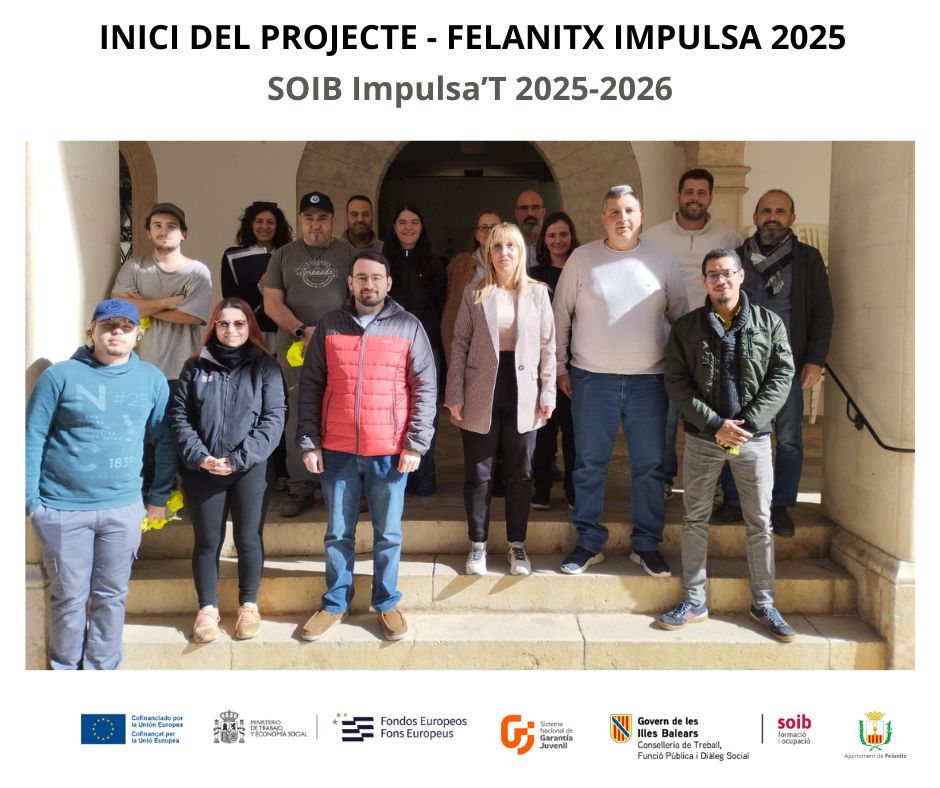 Impulsa’T 2025-2026», una iniciativa promoguda pel SOIB i amb el cofinançament de la Unió Europea (FSE+). Per aquestes contractacions s’ha rebut una subvenció de 186.374,37 €.