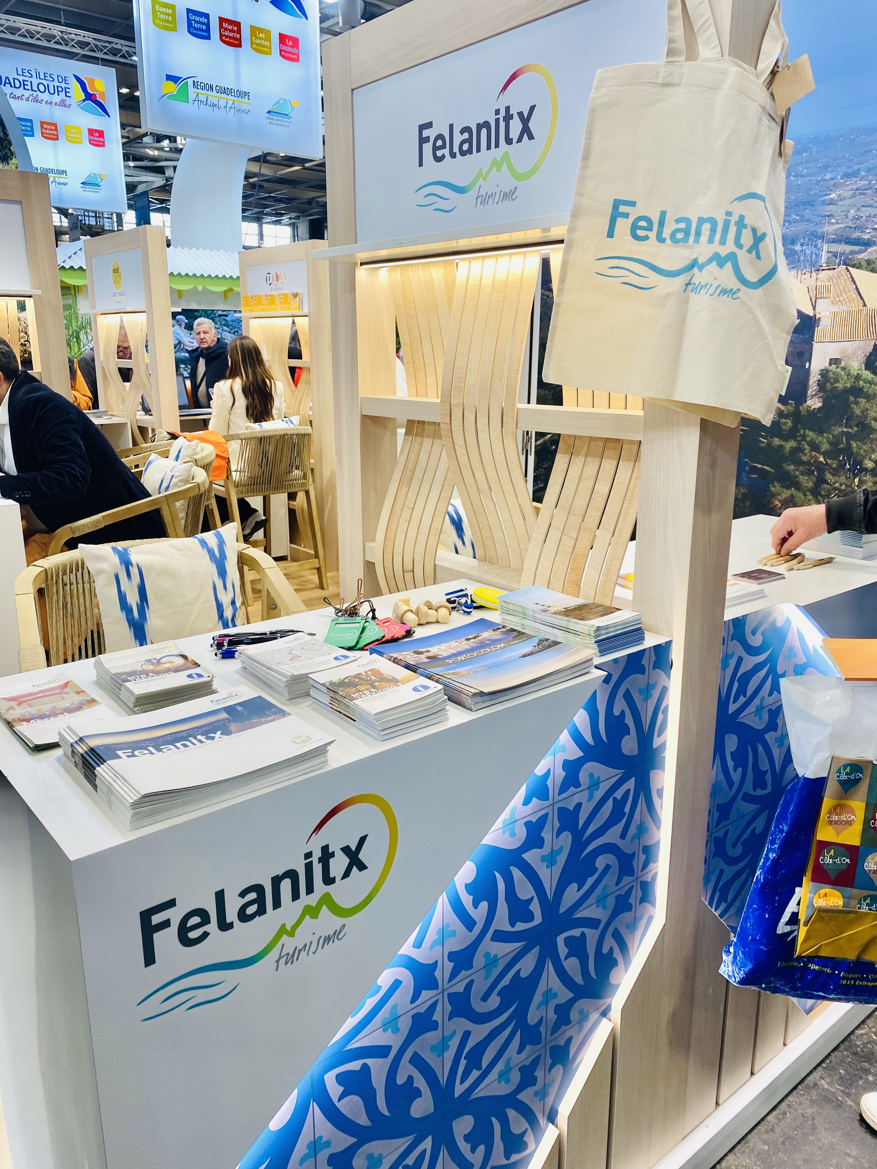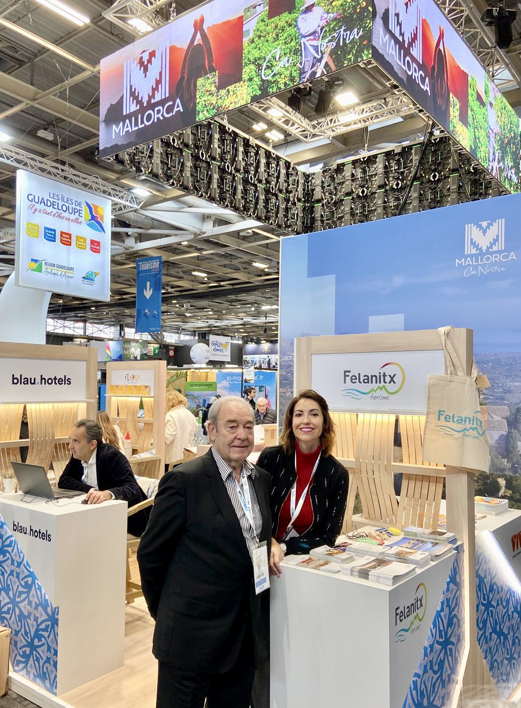 A l'estand de Felanitx hi ha informació sobre rutes de senderisme i cicloturisme, oferta patrimonial i cultural. Al costat de la tècnica de Turisme de l'Ajuntament també hi ha estat present, Joan Esteva, president de l'Associació Hotelera de Portocolom.