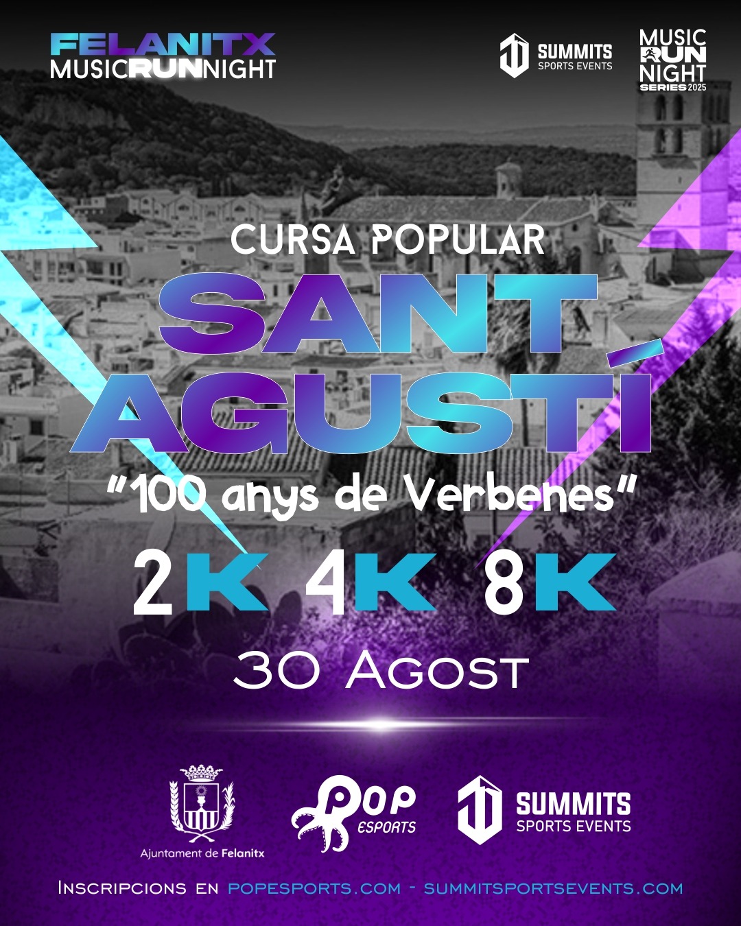 Felanitx es prepara per a la XLV Cursa Popular de Sant Agustí, una edició especial per celebrar 100 anys de verbenes Corre, camina i balla pels carrers en una nit plena de ritme, esport i festa!