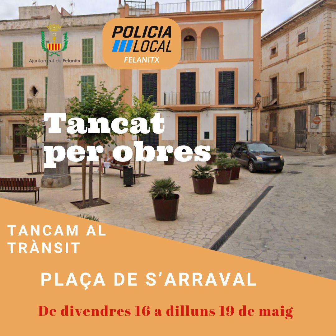 El vinent cap de setmana es tancarà al trànsit la plaça de s'Arraval per poder dur a terme obres de millora del paviment.