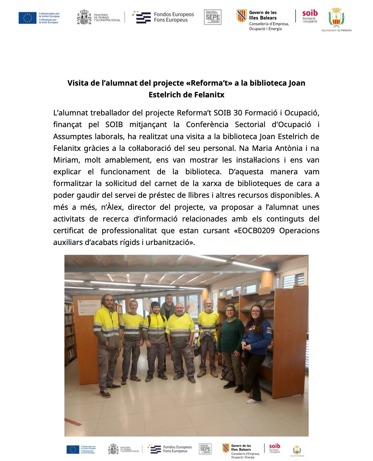 3. visita de lalumnat del projecte reformat la biblioteca joan estelrich de felanitx