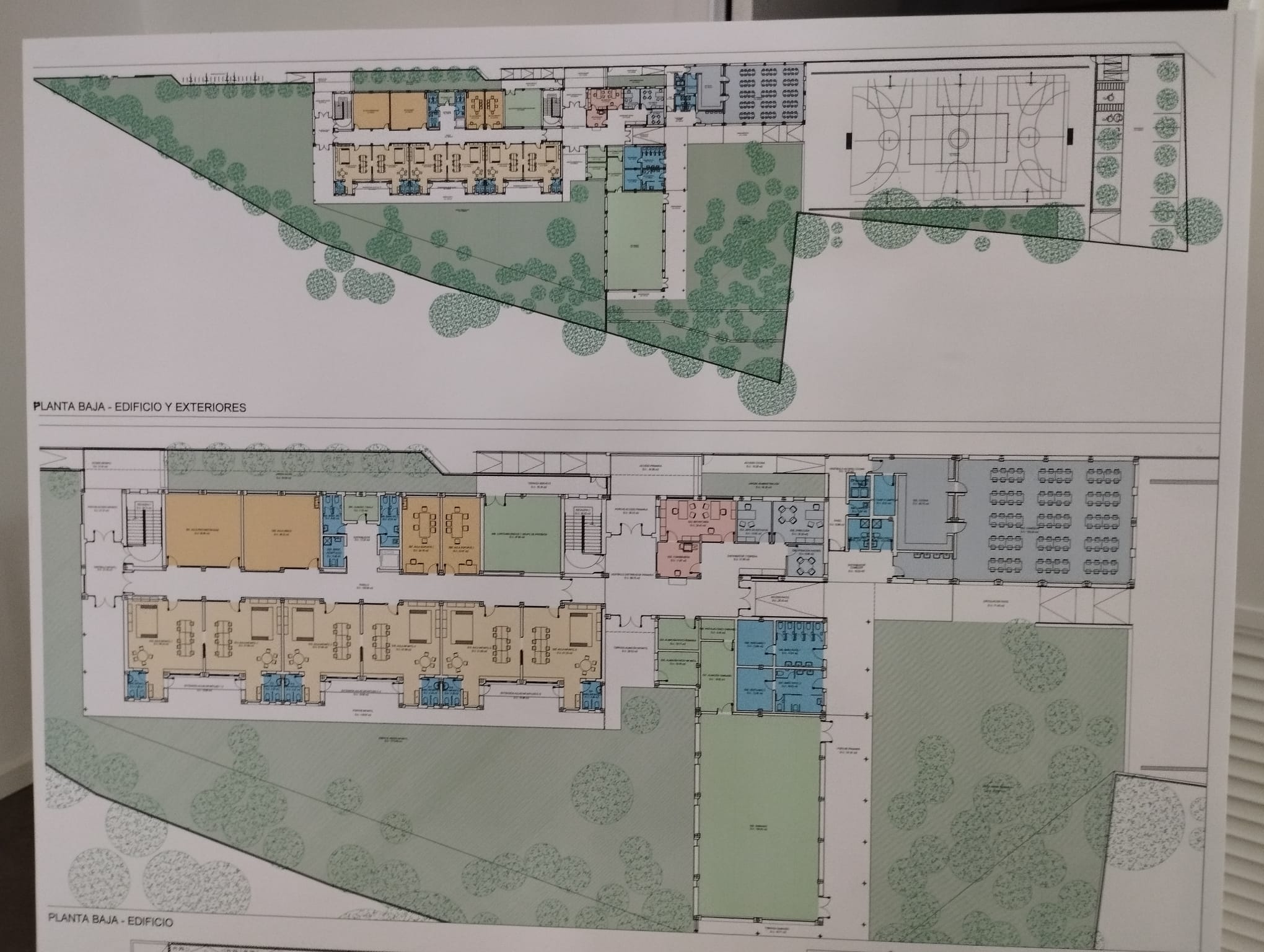 A més, es preveu la construcció d'un segon bloc amb planta baixa, destinat a recepció, consergeria, despatxos de secretaria, direcció, cap d'estudis i atenció als pares. Així mateix, una tercera edificació albergarà magatzems, lavabos de pati i vestidors del gimnàs.